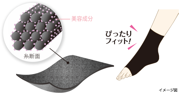 さらに、弱酸性の美容成分をお肌に届けるため、身体にしっかりフィットするように設計しています。ここにも繊維メーカーのノウハウが生かされており、パフォーマンスウェアを活用して、生地が肌に密着する、美容パックのようなフィット感を実現しました。